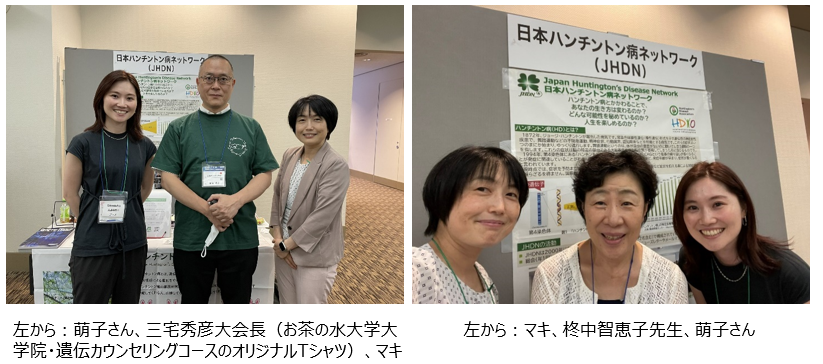 今回は40名もの参加者が当会ブースを来訪してくださいました。普段から交流のある先生や認定遺伝カウンセラーたちだけでなく、遺伝カウンセリングコースで学んでいる院生の方々からも声をかけて頂き、HDを知っていただくことができました。